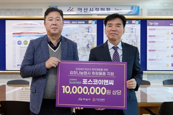 [충청뉴스큐] 포스코이앤씨가 아산시 취약계층 김장나눔 행사를 위해 1,000만원 상당의 후원물품을 지원하기로 하고 지난 30일 전달식을 가졌다.