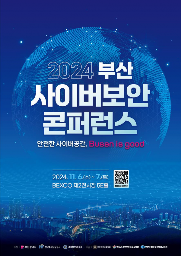[충청뉴스큐] 부산시는 오는 6일과 7일 2일간 벡스코 제2전시장에서 '안전한 사이버공간, Busan is Good'를 주제로 '2024 부산 사이버보안 콘퍼런스'를 개최한다고 밝혔다.