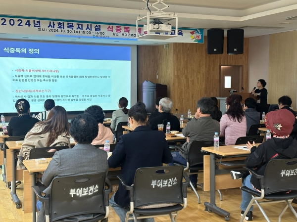 [충청뉴스큐] 부여군은 보건소 다목적실에서 사회복지시설 관리자, 조리 종사자 20여명을 대상으로 식중독 예방 특별교육을 했다고 1일 밝혔다.