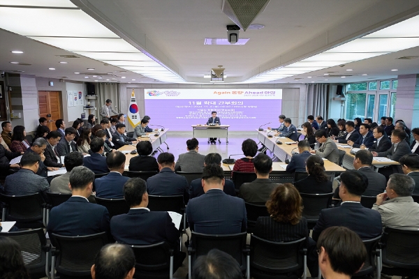 [충청뉴스큐] 조일교 아산시장 권한대행은 4일 시청 상황실에서 열린 ‘11월 확대간부회의’에서 간부공무원의 책임감과 중요성을 강조했다.