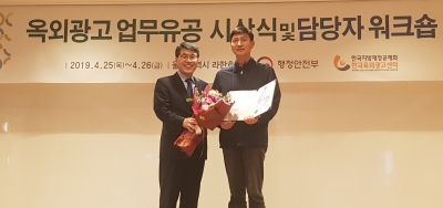 [충청뉴스큐] 평택시는 지난 25일 울산광역시에서 개최된 행정안전부 주관 ‘2018년 옥외광고 업무유공 시상식’에서 우수기관으로 선정되어 장관표창을 수상하고 부상으로 시상금 2천만원을 받았다. 이는 지난 2016년 옥외광고 업무유공 도지사표창 수상 후 2년만의 공적이다.