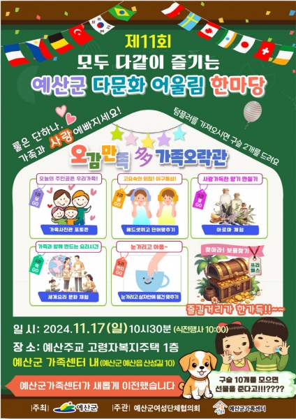 [충청뉴스큐] 예산군은 2024년 제11회 다문화 어울림 한마당 및 예산군가족센터 개소식을 오는 17일 예산군가족센터에서 개최한다.