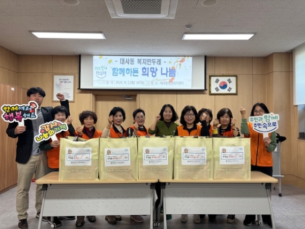 신미영 동장은 “지역의 어려운 이웃을 위해 봉사해주신 대사동 복지만두레 회원분들에게 감사드리며 동에서도 취약계층 발굴과 지원을 위해 더욱 노력하겠다”고 전했다.