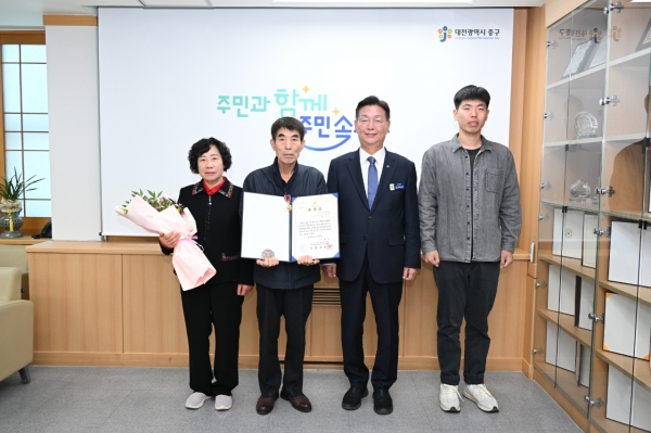 [충청뉴스큐] 대전 중구는 6일 청사 내 구민사랑방에서 故 조명윤 참전용사의 유가족에게 화랑무공훈장을 전수했다고 밝혔다.