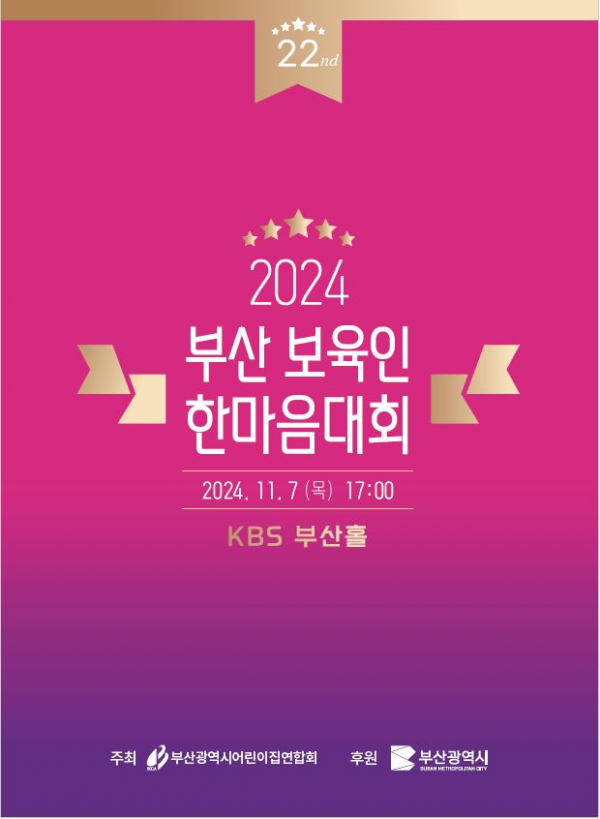 [충청뉴스큐] 부산시는 오늘 오후 5시 케이비에스 부산홀에서 ‘제22회 부산 보육인 한마음 대회’ 가 열린다고 밝혔다.