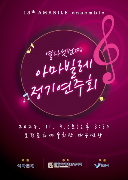 [충청뉴스큐] “깊어가는 가을 바람에 실려 오는 낙엽의 속삭임이 마음을 따스하게 감싸는 11월, 아름다운 관현악의 선율로 여러분을 초대한다” 아마빌레 앙상블은 오는 11월 9일 보령문화의전당 대공연장에서 정기연주회를 개최한다.