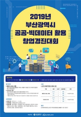 [충청뉴스큐] 부산시와 부산테크노파크는 민간의 창의적인 아이디어로 비즈니스 모델을 발굴하고 공공정보기반의 창업 활성화를 지원하기 위해 ‘2019년 부산시 공공·빅데이터 활용 창업경진대회’를 개최한다고 밝혔다.