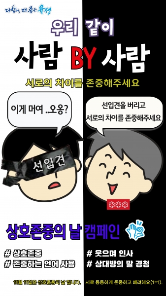 이번 캠페인은 사람마다 다르다는 의미를 담고 있는 ‘사람 바이 사람’ 이라는 신조어를 활용해 서로의 차이를 존중하고 인정하자는 메시지를 전달하고자 마련했다.