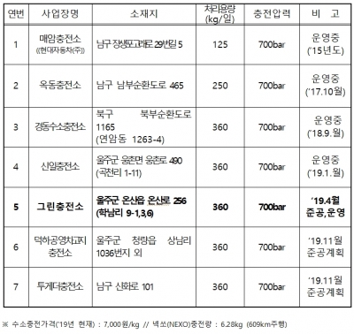 또한 오는 6월까지 경부고속도로 언양휴게소 상행선을 비롯한 5개소에 수소충전소가 추가 구축되어 울산 외부지역에서의 수소충전 편의도 향상될 예정이다.