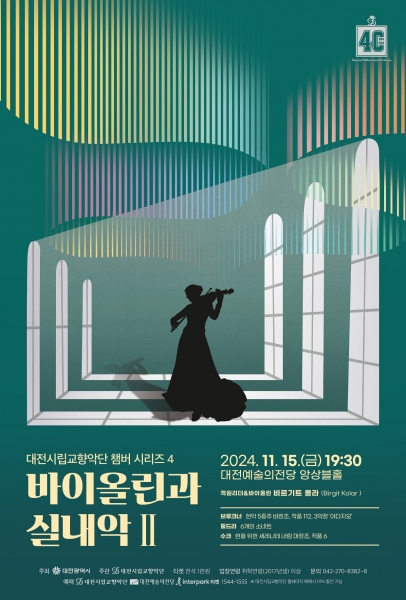 [충청뉴스큐] 대전시립교향악단은 11월 15일 저녁 7시 30분, 대전예술의전당 앙상블홀에서 ‘챔버 시리즈 4 바이올린과 실내악 Ⅱ’를 선보인다.