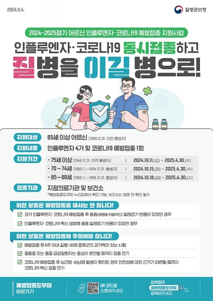 민복기 대구광역시 의사회장은 “의정 갈등 장기화로 의료 공백이 지속되는 상황에서 겨울철 코로나19와 인플루엔자 유행 가능성이 높아지고 있어, 고위험군의 호흡기 감염으로 인한 중증화로 입원·응급실 이용을 최소화해야 한다”며 “65세 이상 어르신들은 두 가지 백신의 동시 접종을 권고하고 있기 때문에 인플루엔자만 접종한 대상자는 코로나19 백신도 접종하기를 권장한다”고 말했다.