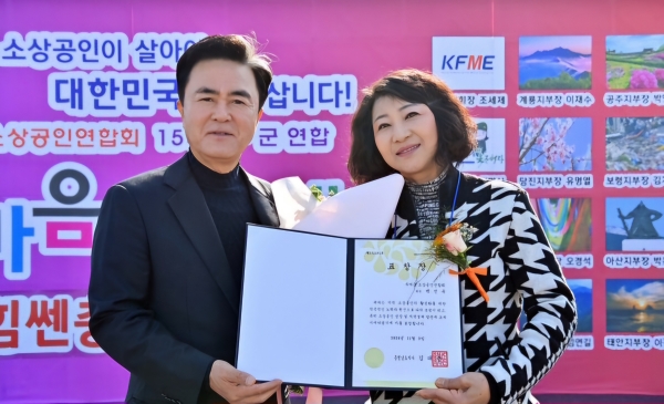 [충청뉴스큐] 부여군은 지난 9일 ‘충남 소상공인연합회 한마음 대축제’에서 유공자 2명이 각각 충청남도지사상과 충청남도 교육감상을 수상했다고 12일 전했다.