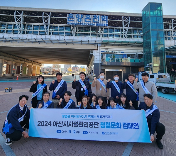 [충청뉴스큐] 아산시시설관리공단은 12일 온양온천역 일대에서 ‘2024년 청렴문화 캠페인’을 실시했다.