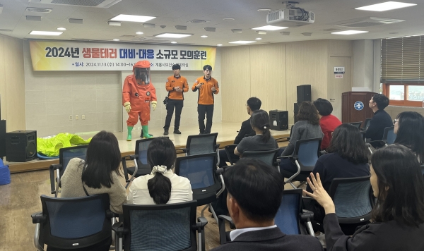 [충청뉴스큐] 계룡시는 지난 13일 보건소 대회의실에서 생물테러 대비·대응 합동 모의훈련을 실시했다.