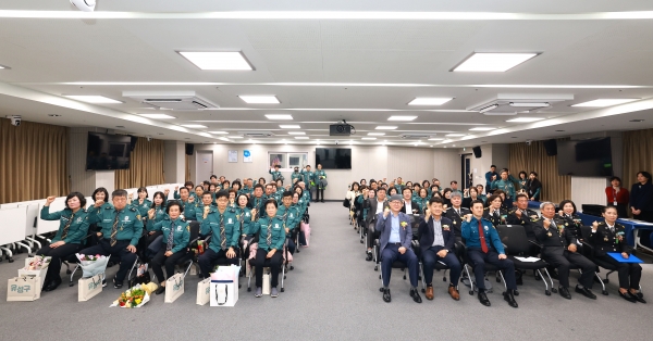 [충청뉴스큐] 지난 13일 유성구청 대회의실에서 열린 유성자율방범연합대 한마음 전진대회에서 문창용 부구청장이 자율방범대원들과 기념촬영을 하고 있다.