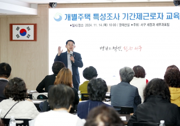 [충청뉴스큐] 대전 서구는 2025년도 적용 개별주택 특성의 정확한 조사를 위해 14일 구청 장태산실에서 40여명의 조사원을 대상으로 교육을 실시했다.