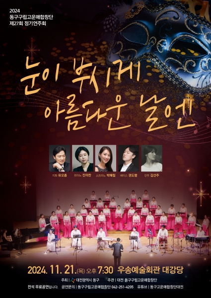 [충청뉴스큐] 대전 동구는 오는 21일 오후 7시 30분 자양동 우송예술회관에서 ‘제27회 동구 고운매합창단 정기연주회’를 개최한다.