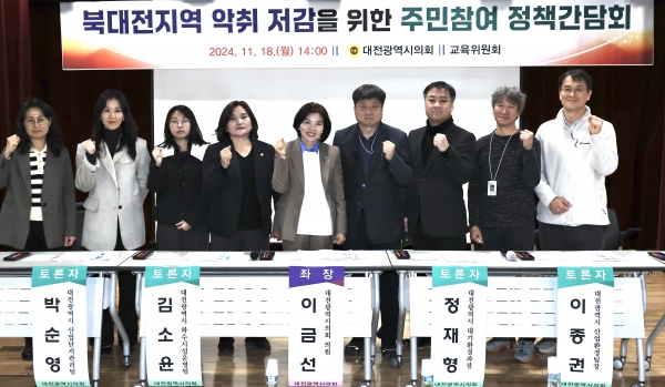 이날 간담회 좌장을 맡은 이금선 의원은 마무리 발언을 통해 “간담회에서 개진된 주민들의 다양한 의견과 대안을 가지고 북대전지역의 악취 관련 불편 사항을 지속해서 개선할 수 있도록 시의회 차원에서 최선의 정책을 수립해 문제를 해결하는 데 힘쓰겠다”고 약속했다.