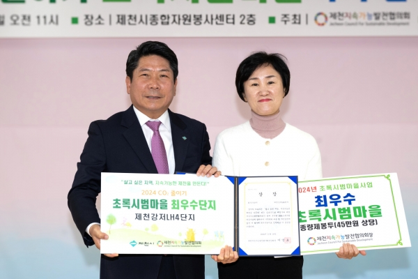 박영기 제천시의회 의장 역시 “오늘 시상식은 시민들의 작은 노력이 모여 큰 변화를 만들어냈음을 보여주는 자리”며 “시의회도 지속 가능한 제천을 위해 아낌없는 지원을 하겠다”고 밝혔다.