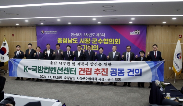 한편 이날 회의에 참석한 충남도 시장·군수들은 K-국방컨벤션센터 건립 추진을 위한 공동 건의문에 서명하고 아산시 건의 1건을 포함한 총 11개 안건을 중앙정부에 건의하기로 의결했다.