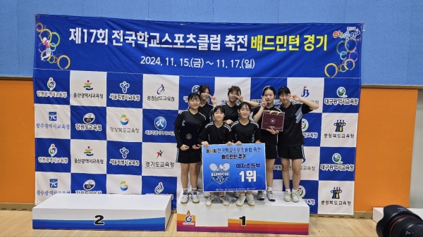 [충청뉴스큐] 대전백운초등학교는 11월 15일부터 17일까지 경남 밀양에서 열린 ‘제17회 전국학교스포츠클럽 축전 배드민턴 경기’에서 여자초등부 대전 대표로 참가해 우승을 차지했다고 밝혔다.