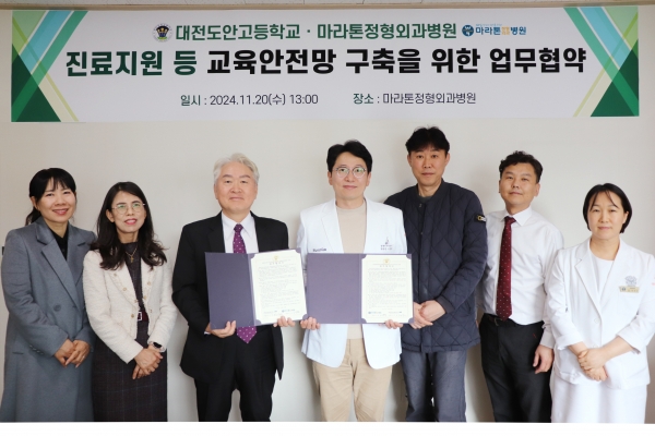 [충청뉴스큐] 대전도안고등학교는 10월 16일부터 11월 20일까지 연세정원치과의원, 유&그린한의원, 아이비내과의원, 마라톤정형외과병원 등 지역 내 의료기관과 업무협약을 체결해 건강하고 안전한 학교생활과 사회생활을 보장하는 도안고 교육안전망 1차 구축을 완료했다고 밝혔다.