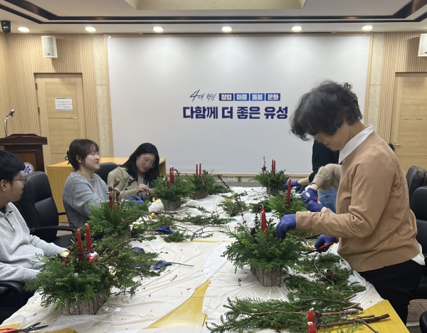 이번 프로그램은 민원창구에 근무하는 직원을 대상으로 진행됐으며 민원처리 담당자들은 ‘테라리움’과 ‘크리스마스 센터피스’를 동료들과 함께 만들며 힐링의 시간을 가졌다.