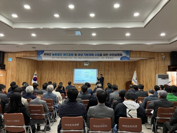 [충청뉴스큐] 부여군은 지난 20일 부여군 여성문화회관에서 열린 ‘농촌공간 재구조화 및 재생 기본계획’ 주민설명회를 성공적으로 마쳤다.