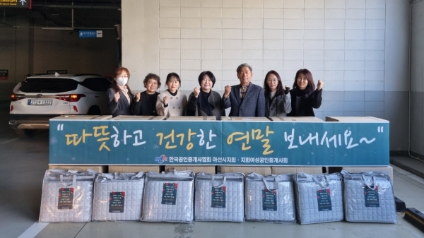 [충청뉴스큐] 아산시는 지난 20일 한국공인중개사협회 아산시지회 여성공인중개사회로부터 관내 취약계층을 위한 300만원 상당의 겨울나기 극세사 패드 100장을 후원받았다고 밝혔다.