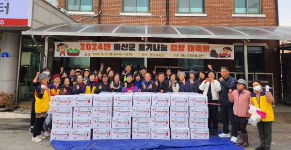 [충청뉴스큐] 예산군자원봉사센터는 지난 21일 센터 주차장에서 관내 취약계층을 위한 ‘2024년 예산군 온기나눔 김장 대축제’를 개최했다.