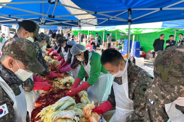 이번 김장 나누기 행사는 새마을부녀회와 계룡시 청년새마을연대, 시청 펜싱팀 선수와 관계자, 203신속대응여단 제1신속대응대대 장병과 관내 다문화 가정 등 100여명이 참여한 가운데 열렸다.