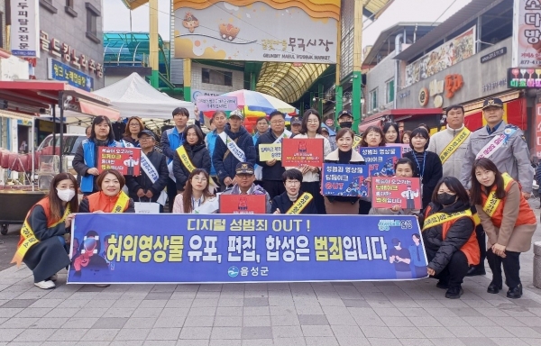 [충청뉴스큐] 음성군은 여성폭력 추방주간을 맞아 25일 금왕읍 무극시장 일대에서 딥페이크·가정폭력·여성폭력 추방 연대 캠페인을 실시했다.
