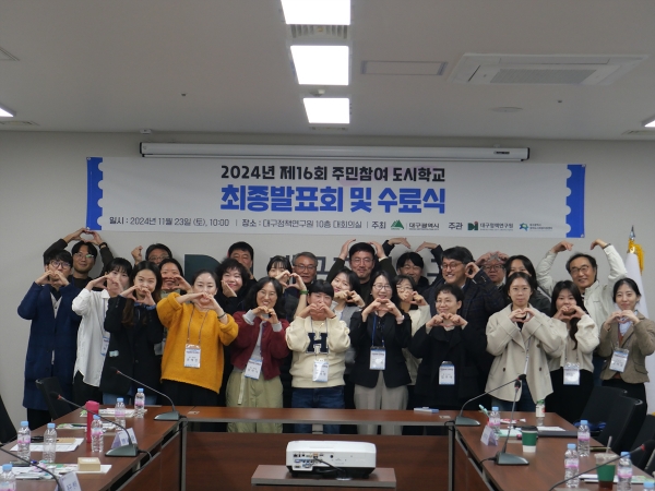 [충청뉴스큐] 대구광역시는 주민의 주도적 참여로 만들어가는 도시재생을 위해 주민이 전문가의 수업, 실습을 통해 실현가능한 도시재생 계획안을 만드는 ‘제16회 주민참여 도시학교’를 10월에서 11월까지 6주 동안 운영하고 최종 결과물 발표와 수료식을 지난 11월 23일 대구정책연구원에서 개최했다.