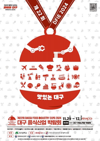 [충청뉴스큐] 대구광역시는 이번 주 29일부터 12월 1일까지 3일간 엑스코에서 제22회 대구 음식산업박람회와 제13회 대구 커피&카페박람회를 동시 개최한다.