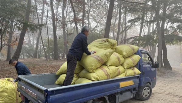 [충청뉴스큐] 부여군은 26일 부소산성, 왕릉원, 구드래, 관북리 유적 일원등 사적 및 명승에서 수거된 지엽 약 2톤을 지역 농가와 공공기관에 제공했다.