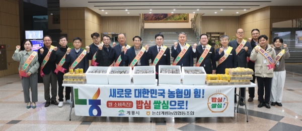 [충청뉴스큐] 계룡시는 26일 시청에서 논산계룡농협과 함께 출근길 공직자에게 우리쌀로 만든 떡을 나눠주며 아침밥 먹기 캠페인을 전개했다.