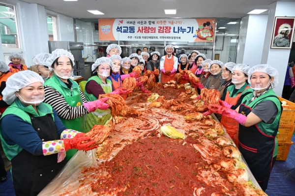 [충청뉴스큐] 대전 중구 석교동은 26일 자생단체협의회와 지역사회보장협의체 공동 주관으로‘사랑의 김장나눔’행사를 진행했다고 밝혔다.