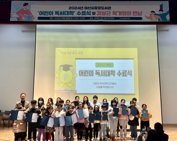 [충청뉴스큐] 아산시립도서관은 지난 23일 중앙도서관 강당에서 ‘2024년 어린이 독서대학 수료식’을 개최했다.