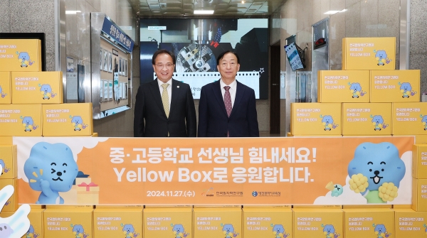 [충청뉴스큐] 대전시교육청은 11월 27일 한국원자력연구원으로부터, 유성구 중·고등학교 교원들을 응원하는 ‘옐로박스’ 2,020개를 기탁받았다고 밝혔다.