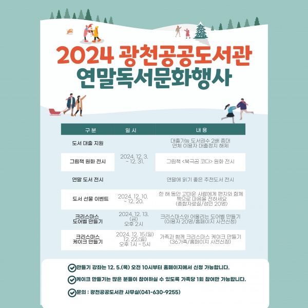 [충청뉴스큐] 광천공공도서관이 연말을 맞이해 다채롭고 풍성한 독서문화 체험활동을 마련했다.