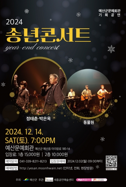 [충청뉴스큐] 예산군문예회관은 오는 12월 14일 저녁 7시 2024년 한해를 마무리 하며 군민화합의 장 마련과 군민의 문화욕구 충족을 위한 ‘2024년 송년 콘서트’를 개최한다.