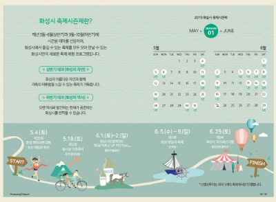 이에 시범적으로 오는 4일 화성시종합경기타운에서 개최되는 ‘제20회 화성 효 마라톤 대회’부터 18일 봄 사랑 가족축제, 6월 1일부터 2일 MILK UP 페스티벌, 5일부터 9일 화성 뱃놀이 축제, 29일 파크 페스티벌까지 총 5개 대표 축제를 한 시즌으로 엮었다.