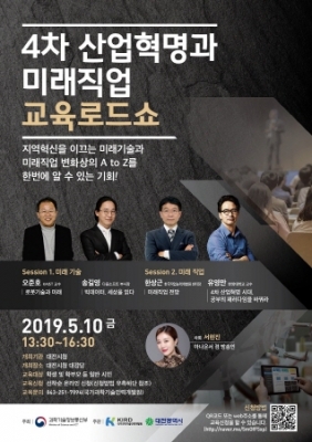 오는 10일 오후 1시 30분 대전시청 대강당에서는 과학기술정보통신부가 주최하고 대전시와 국가과학기술인력개발원이 공동 주관하고, 대통령 직속 4차산업혁명위원회가 후원하는 '4차 산업혁명과 미래직업 교육로드쇼'가 개최된다.