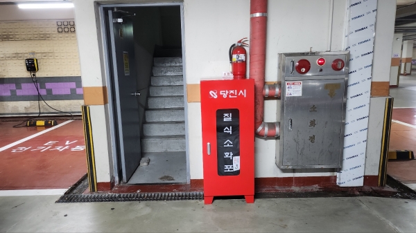 [충청뉴스큐] 당진시가 29일 전기차 충전시설이 설치된 공동주택 지하 주차장에 질식소화포 설치를 완료했다고 밝혔다.