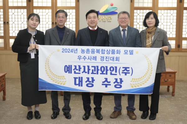 [충청뉴스큐] 예산군은 농업회사법인 예산사과와인㈜이 농촌진흥청이 주관한 2024년 농촌융복합상품화 모델 우수사례 경진대회에서 ‘대상’을 수상했다고 밝혔다.