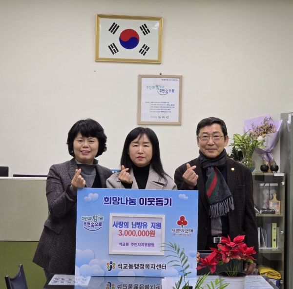 이번 지원은 올겨울 한파와 난방비 폭등으로 인해 위기에 처한 저소득층에게 조금이나마 도움을 주고자 석교동 주민자치위원들이 십시일반 모은 회비로 추진하게 됐다.