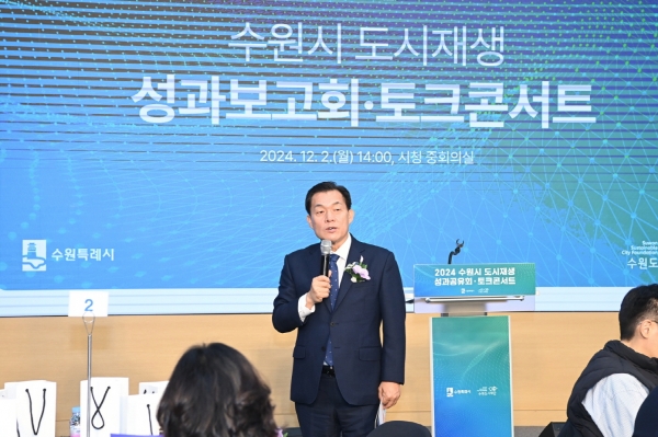 2일 시청 중회의실에서 열린 ‘2024 수원시 도시재생 성과공유회, 토크콘서트’에 함께한 이재준 시장은 “주민 여러분이 적극적으로 참여해 주신 덕분에 도시재생사업을 성공적으로 추진할 수 있었다”며 “사업의 주역으로서 함께 노력해 주신 모든 분께 감사드린다”고 밝혔다.