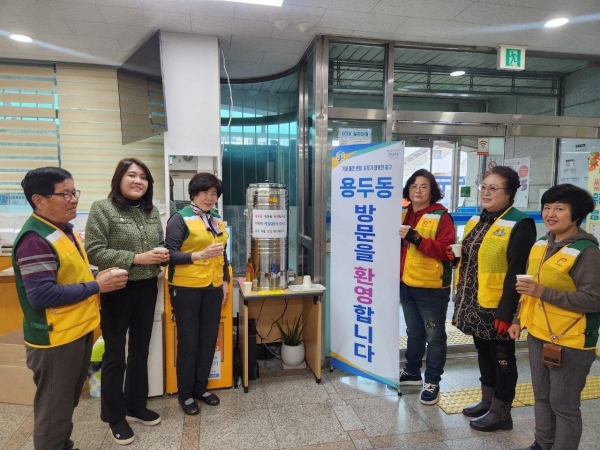 [충청뉴스큐] 대전 중구 용두동은 지난 11월부터 내년 2월까지 자원봉사협의회에서 행정복지센터 방문 주민 및 관내 어르신에게 직접 만든 따뜻한 대추생강차 나눔 봉사를 진행한다고 밝혔다.
