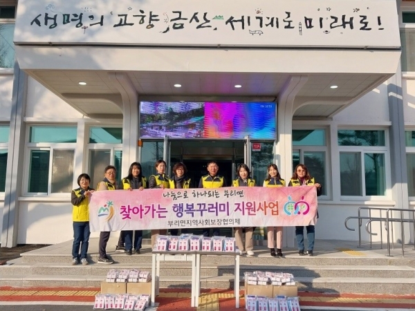 [충청뉴스큐] 금산군 부리면지역사회보장협의체는 지난 2일 독거노인 등 저소득층을 위해 찾아가는 한가득 행복 꾸러미 전달에 나섰다.