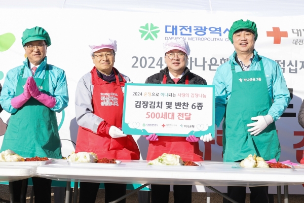 이날 행사는 대한적십자사 대전세종지사가 주최하고 하나은행 충청영업그룹이 후원 했으며 마련된 김장김치 500박스는 지역 보육시설과 취약계층 500세대에게 전달될 예정이다.